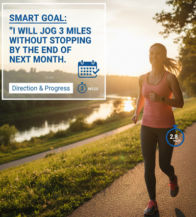 Instead of a vague goal like “get fit,” set a SMART goal: “I will jog…